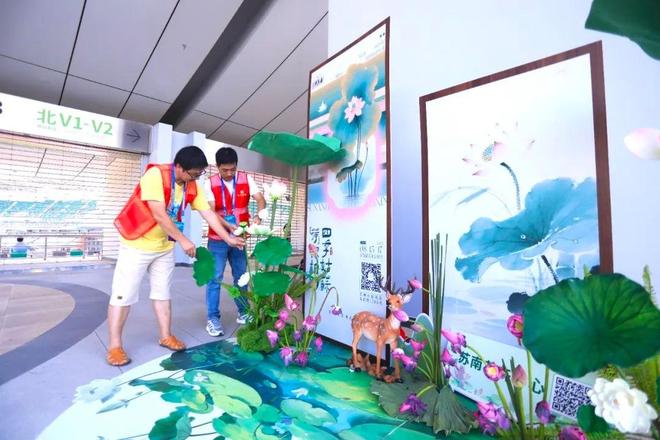 在赛场内外装点了许多荷花